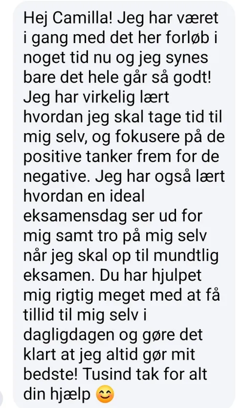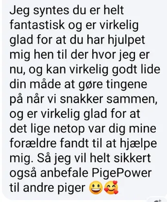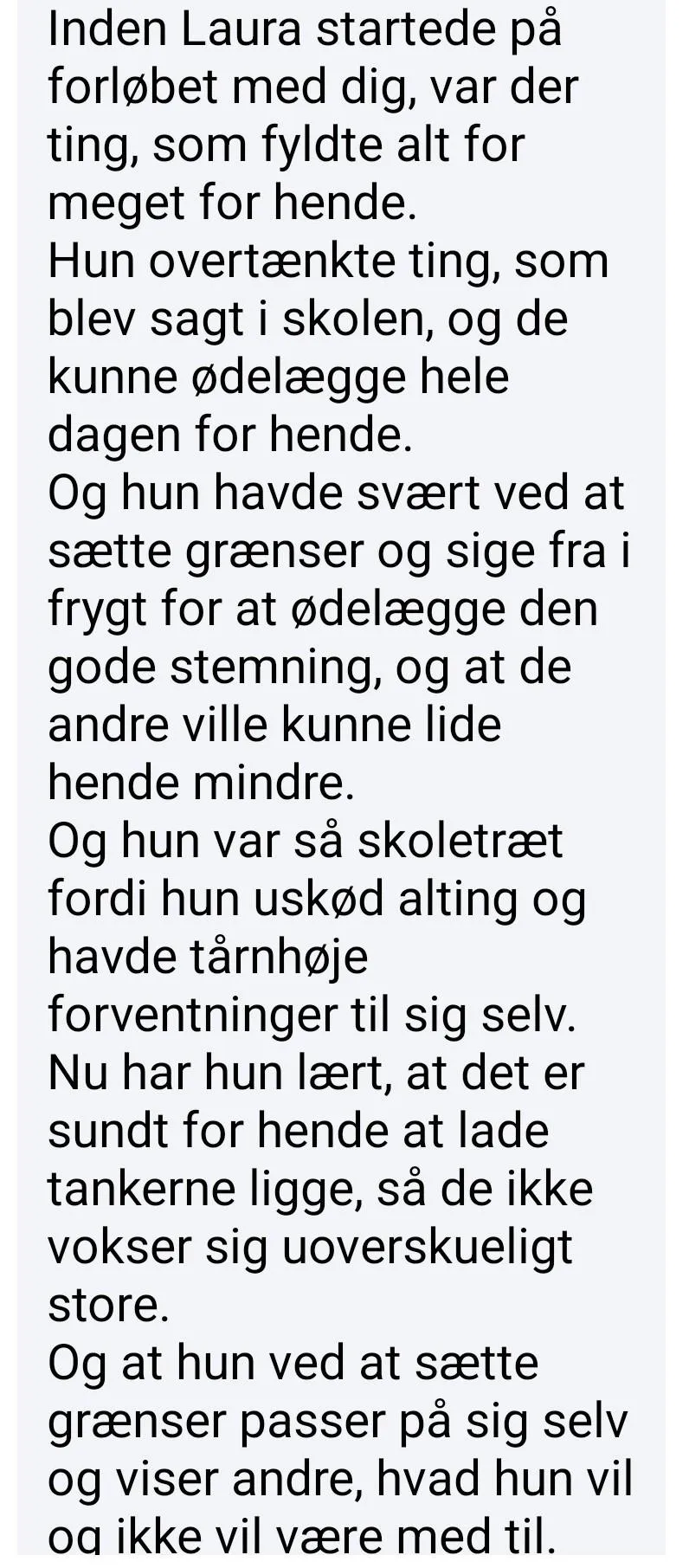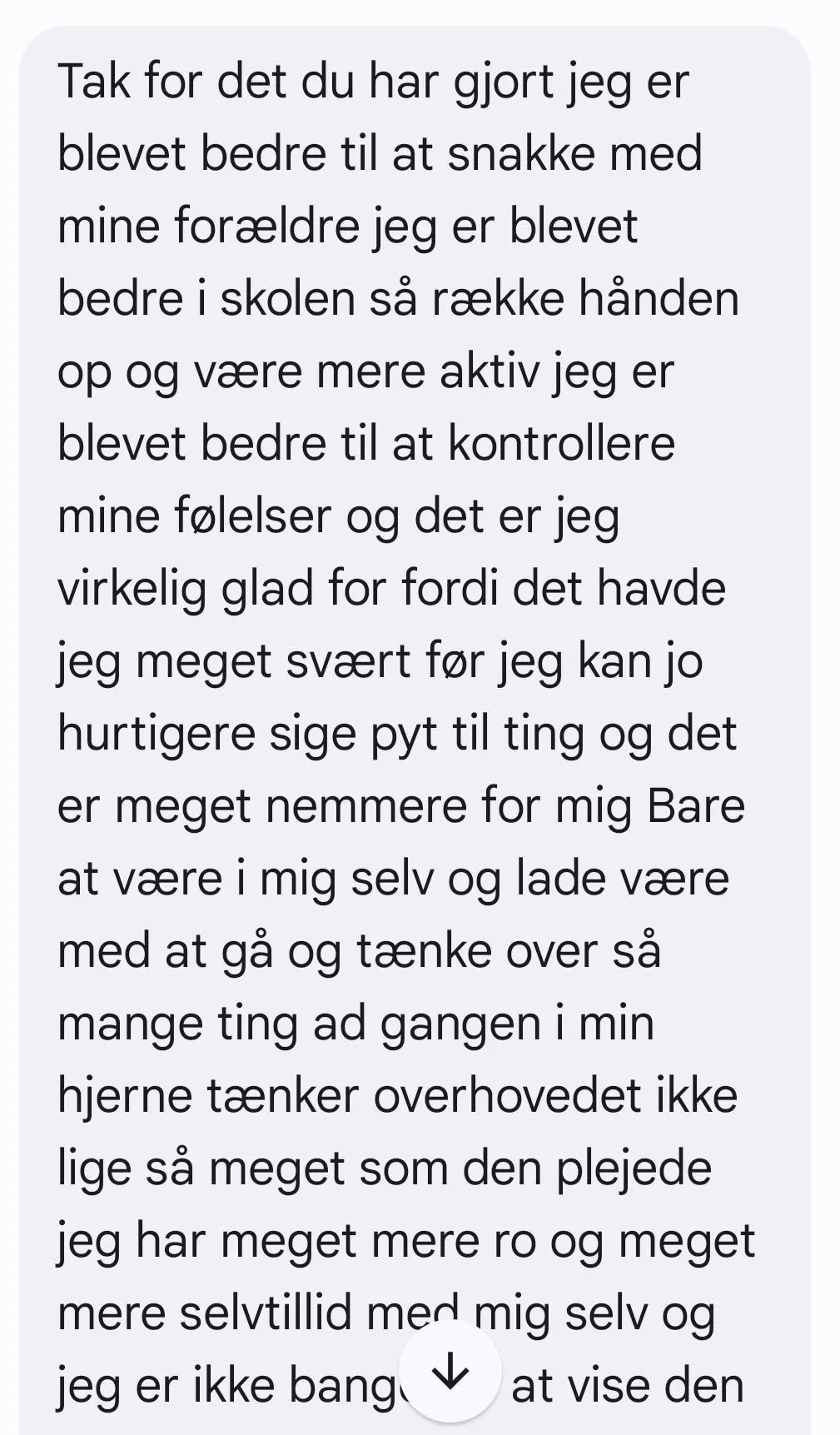 "Du har hjulpet mig rigtig meget med at få tillid til mig selv i dagligdagen."